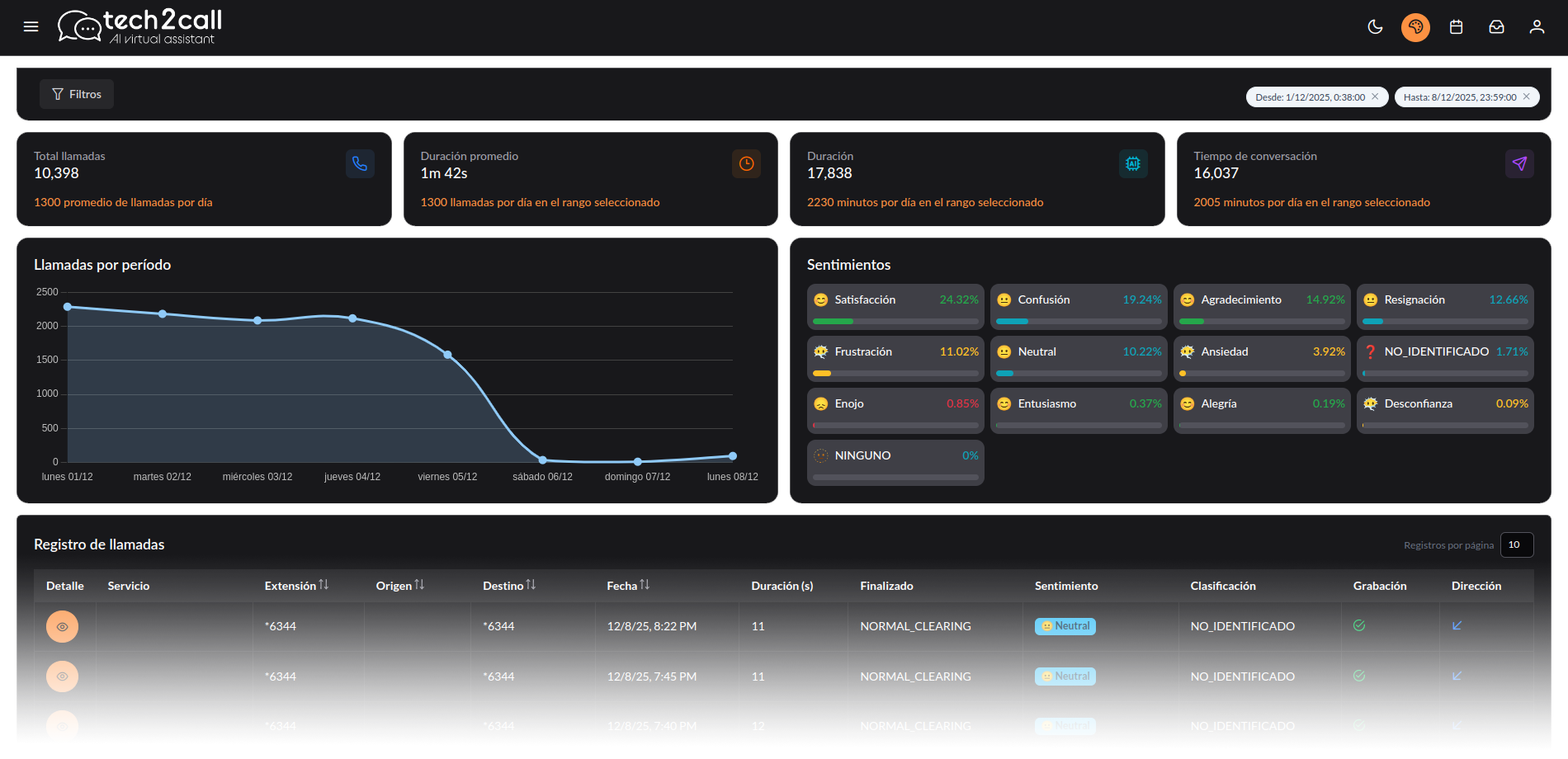 Escucha las llamadas directamente desde el dashboard, con controles intuitivos y acceso inmediato.